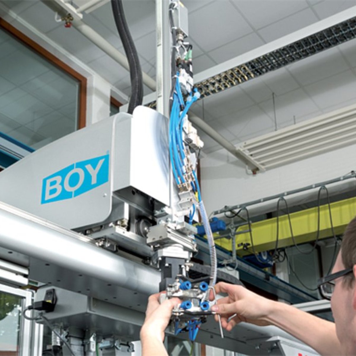 Die BOY 125 E setzt neue Maßstäbe als höchstwertige Spritzgießmaschine im BOY-Portfolio. Mit stolzen 1 250 kN Schließkraft, erweitertem Holm- und Plattenabstand (470 mm bzw. 825 mm) und benutzerfreundlichem Vierholm-Schließsystem bietet sie unschlagbare Möglichkeiten im Spritzguss und kurze Rüstzeiten.