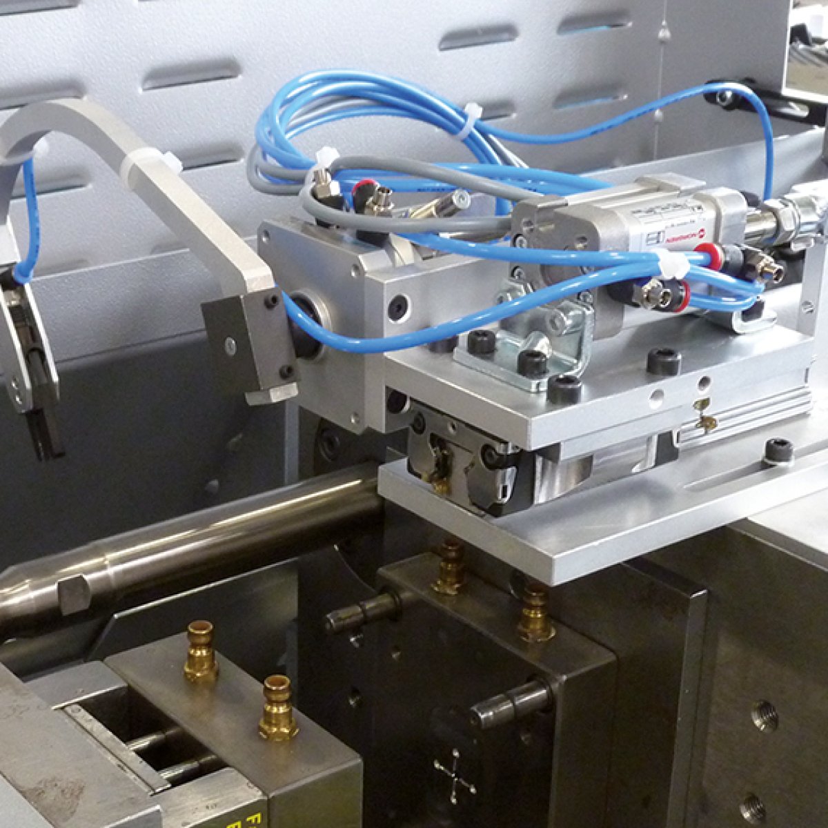 Die BOY XS E überzeugt durch ihre extrem kompakte Bauform bei gleichzeitig hoher Präzision. Mit einer Schließkraft von 100 kN auf nur 0,87 m² Grundfläche bietet sie innovative Lösungen für Mikrospritzguss und angusslosen Kleinteilespritzguss. Die frei überstehende Zweiplatten-Schließeinheit mit diagonaler Holm-Anordnung ermöglicht hervorragende Zugänglichkeit zur Plastifiziereinheit, zum Werkzeugraum und Auswerfer – ideal für Automatisierung im Spritzguss. Optional lässt sich die Maschine auch mit speziellen Schließplatten für Mikroformen namhafter Normalien-Hersteller ausstatten.